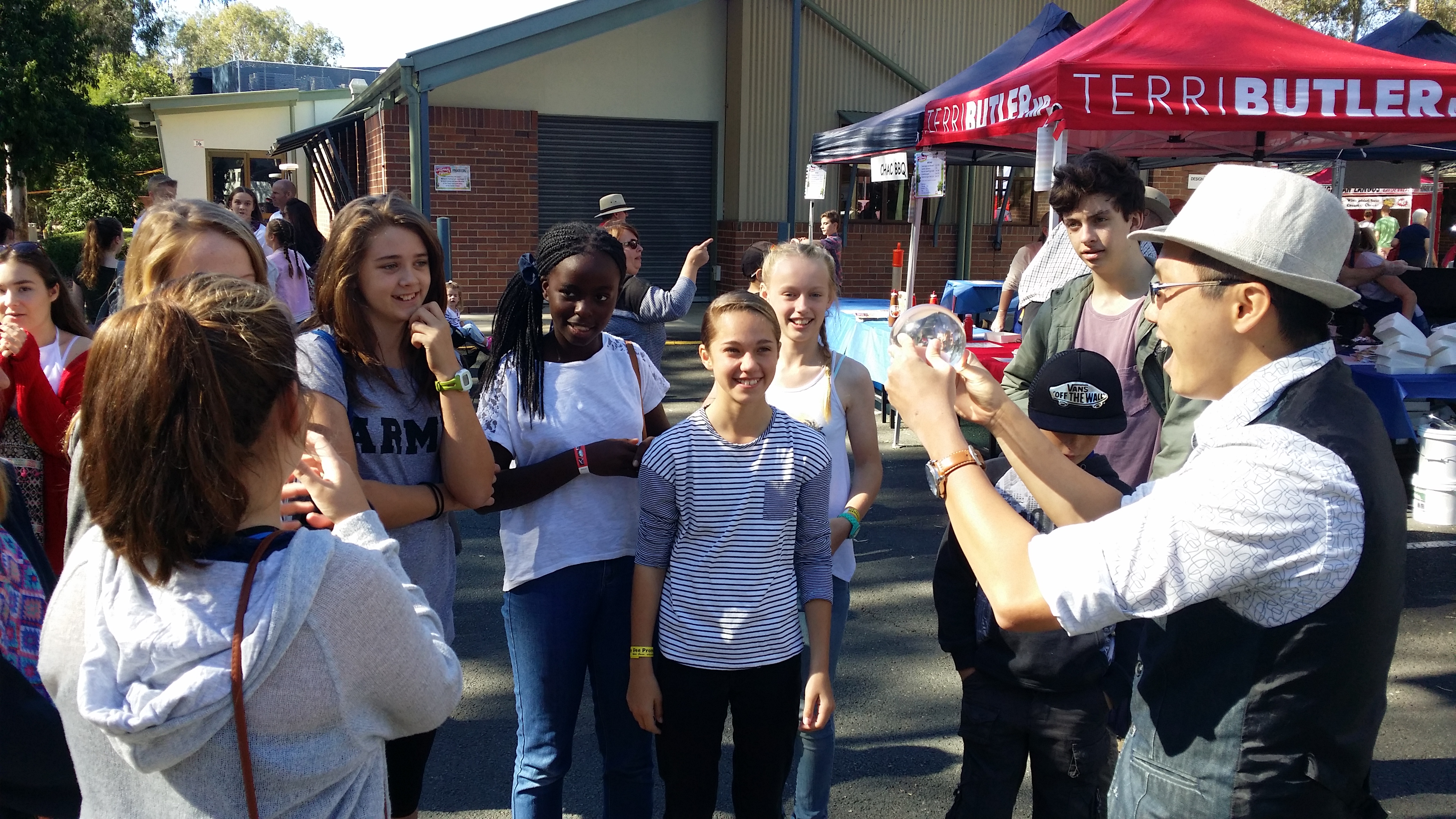 Previous Image Next Image Magic Crystal Ball Contact Juggling with Sam Sam the Magic Man Roving Walkaround Close-up Magic